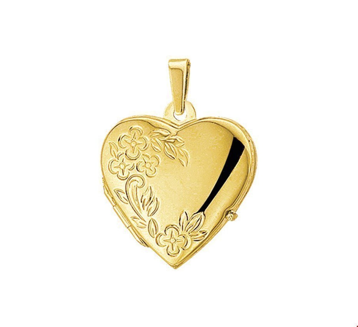 14k Geelgouden hart medaillon. Het hart heeft een afmeting van 17×17.5mm.