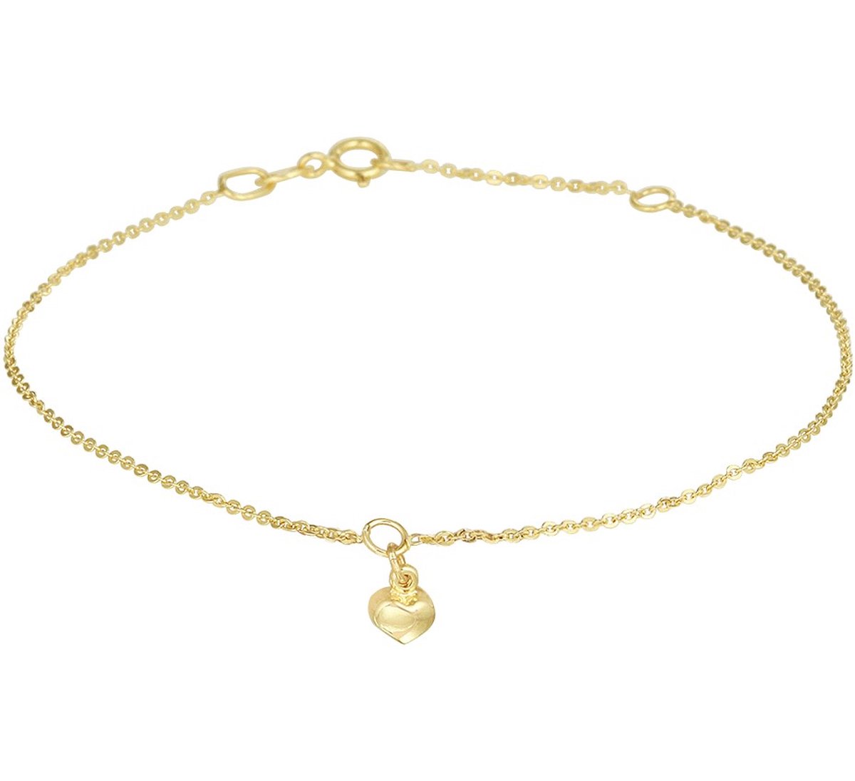 Dit elegante 14K geelgouden enkelbandje is een subtiele blikvanger aan je enkel. Het verfijnde ontwerp met hartjesdetails straalt romantiek en stijl uit, perfect voor wie houdt van een sierlijk en betekenisvol sieraad.