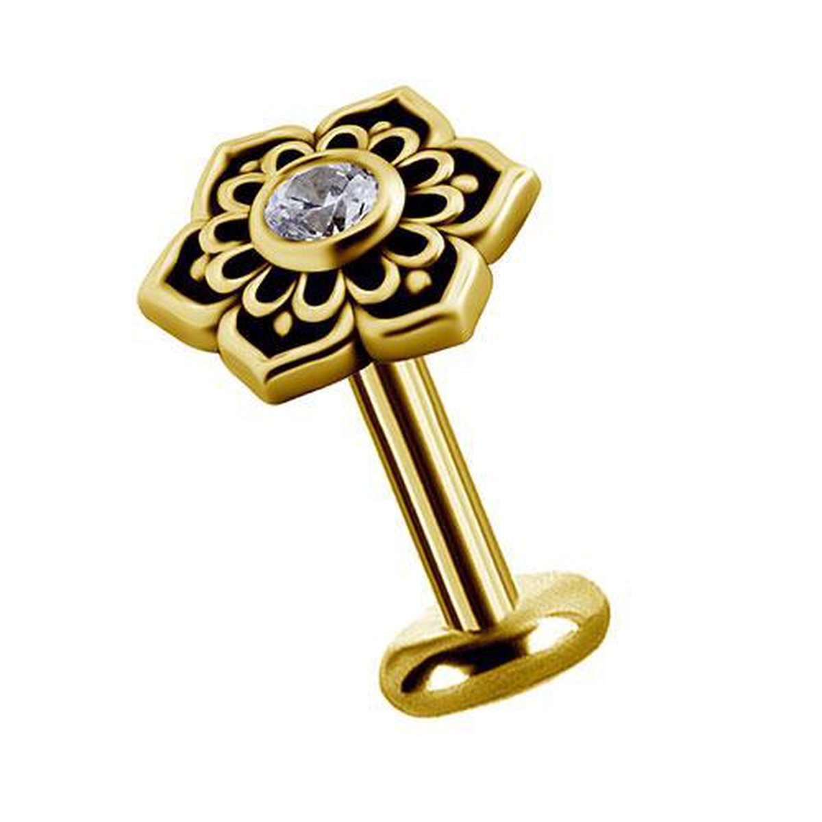 18 Karaat Goud Tragus Piercing – Swarovski Zirkonia Bloemetje