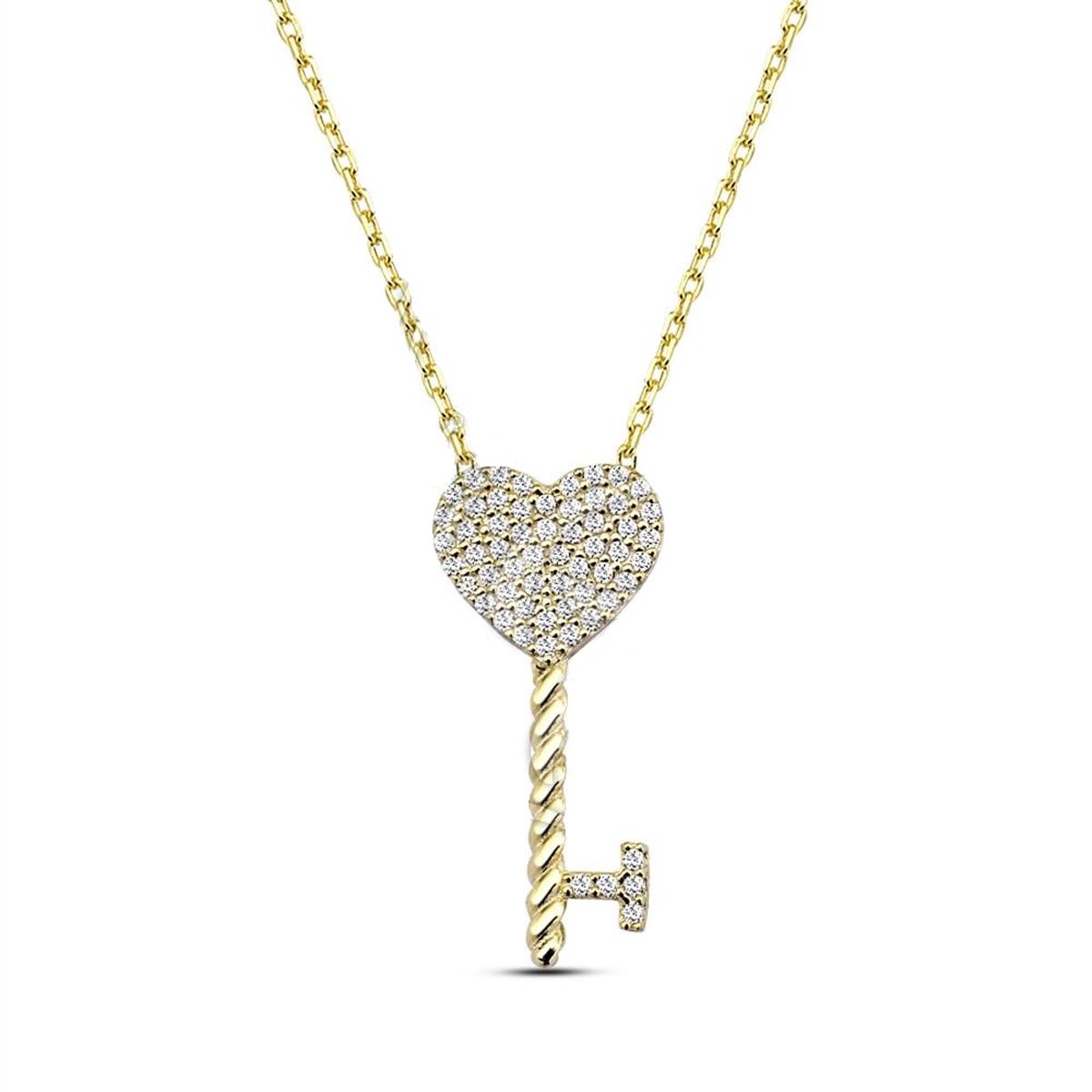 18K Goud Sleutel Hart met Swarovski® Kristal Ketting – 40cm +5cm