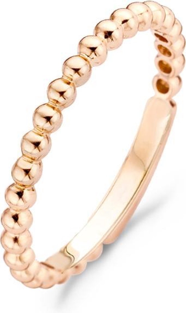 Deze rosé gouden Blush ring met referentie 1105RGO is gemaakt van aan elkaar gezette bollen op band van de ring. De band is 2 mm breed en de bollen zijn voor 3/4 doorgevoerd.