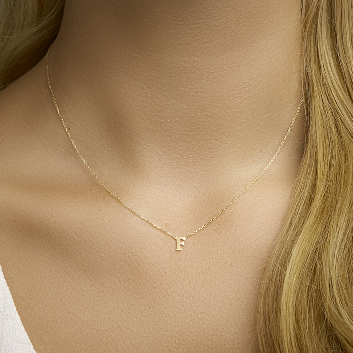 14k Geelgouden anker collier uitgevoerd met een letter. Het collier heeft draaglengtes van 40, 42 en 44cm. De schakelbreedte is 0.8mm.