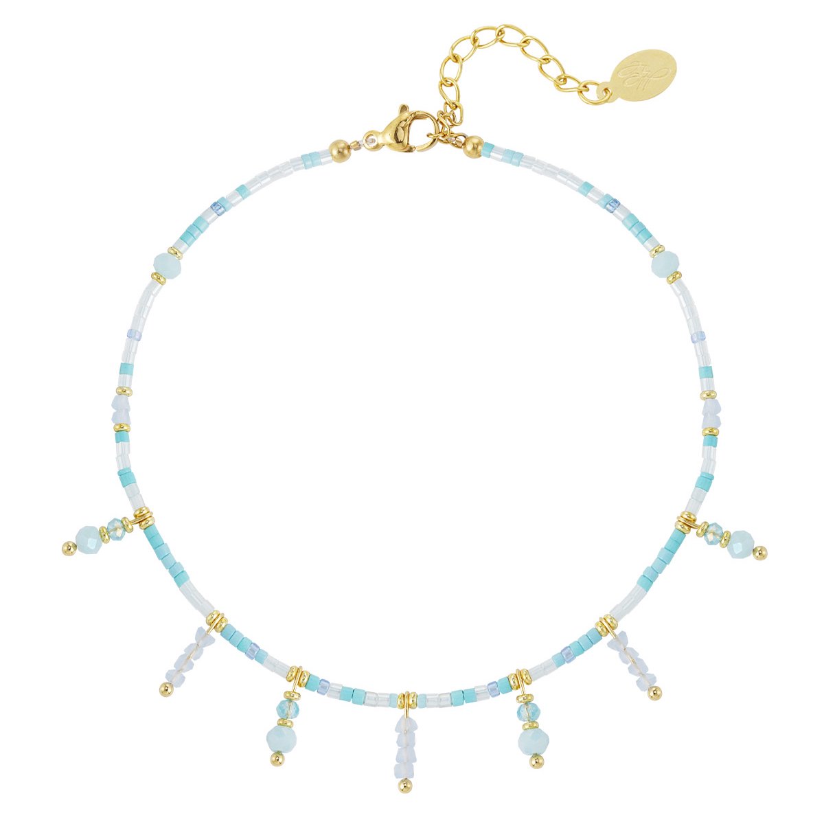 Enkelbandje sunny – kralen blauw – waterproof – stainless steel