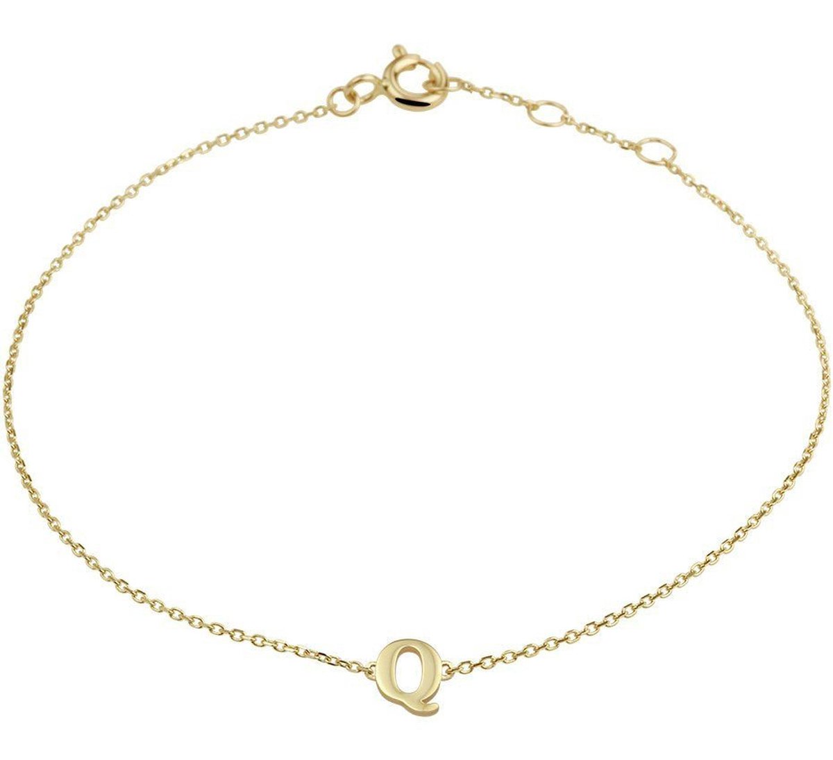 14k Geelgouden anker armband uitgevoerd met de letter X. De armband heeft draaglengtes van 16.5