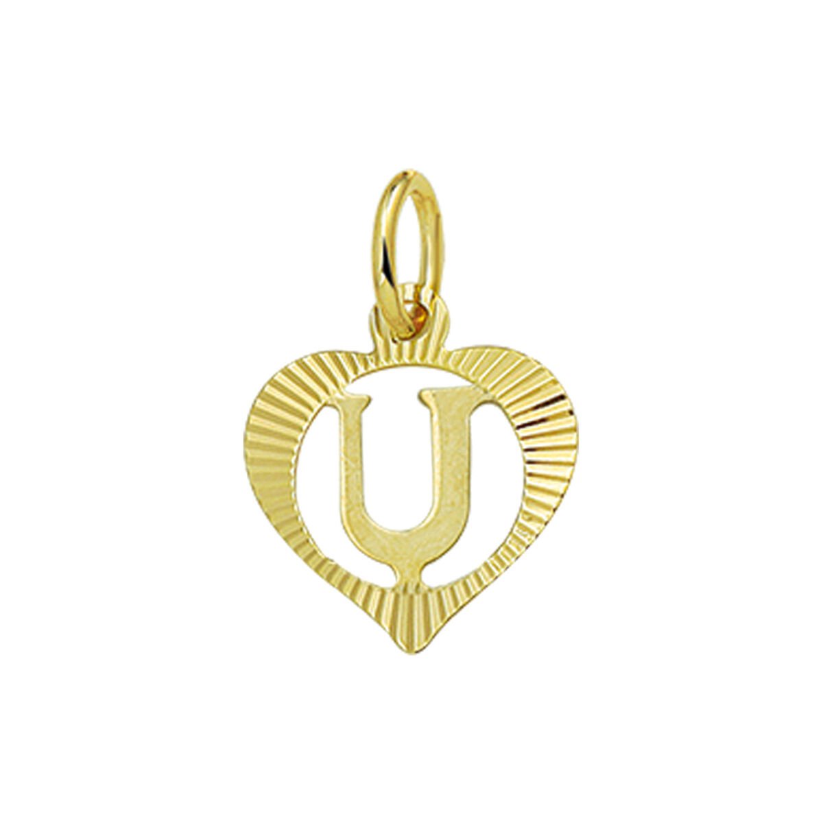 Draag je initialen trots met de Goud Hanger Letter U in hart vorm. Deze prachtige unisex letterhanger is gemaakt van hoogwaardig 14 karaats geelgoud. Met een gepolijste afwerking, is deze hanger een subtiel en stijlvol sieraad.