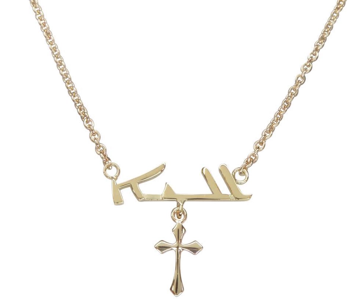 Gouden Arabische naam met kruis hanger