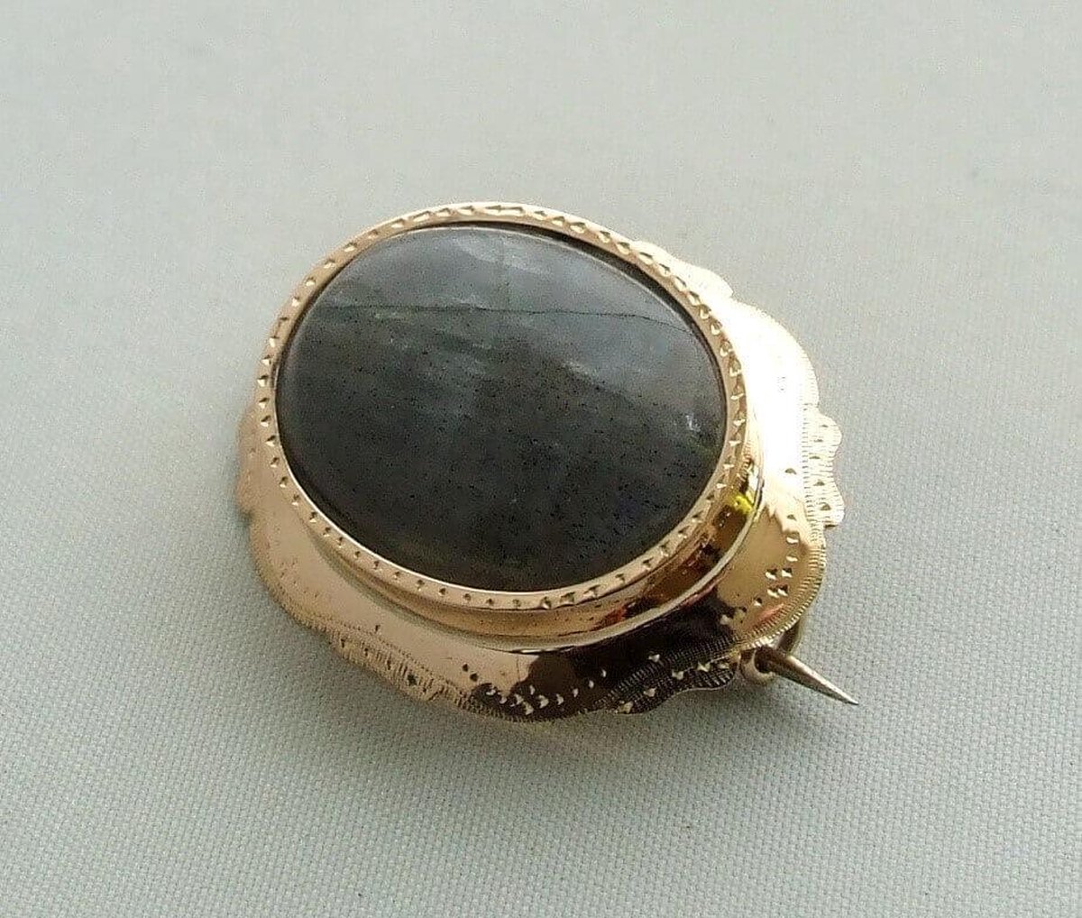 Gouden broche met labradoriet