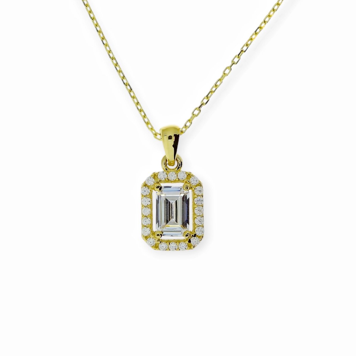 Gemaakt van het beste 14-karaats geelgoud, straalt deze minimalistische ketting klasse en stijl uit. De fantasiehanger is versierd met schitterende Zirkonia-steentjes in een opvallende Baguette-slijpvorm, die schittert en straalt bij elke beweging.