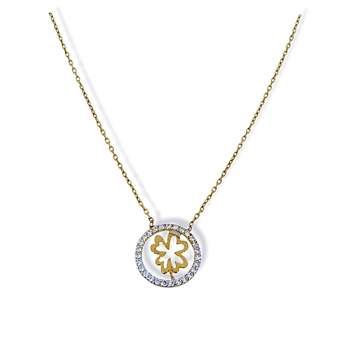 Gouden Ketting Klavertje Hanger Zirkonia 14 karaats.