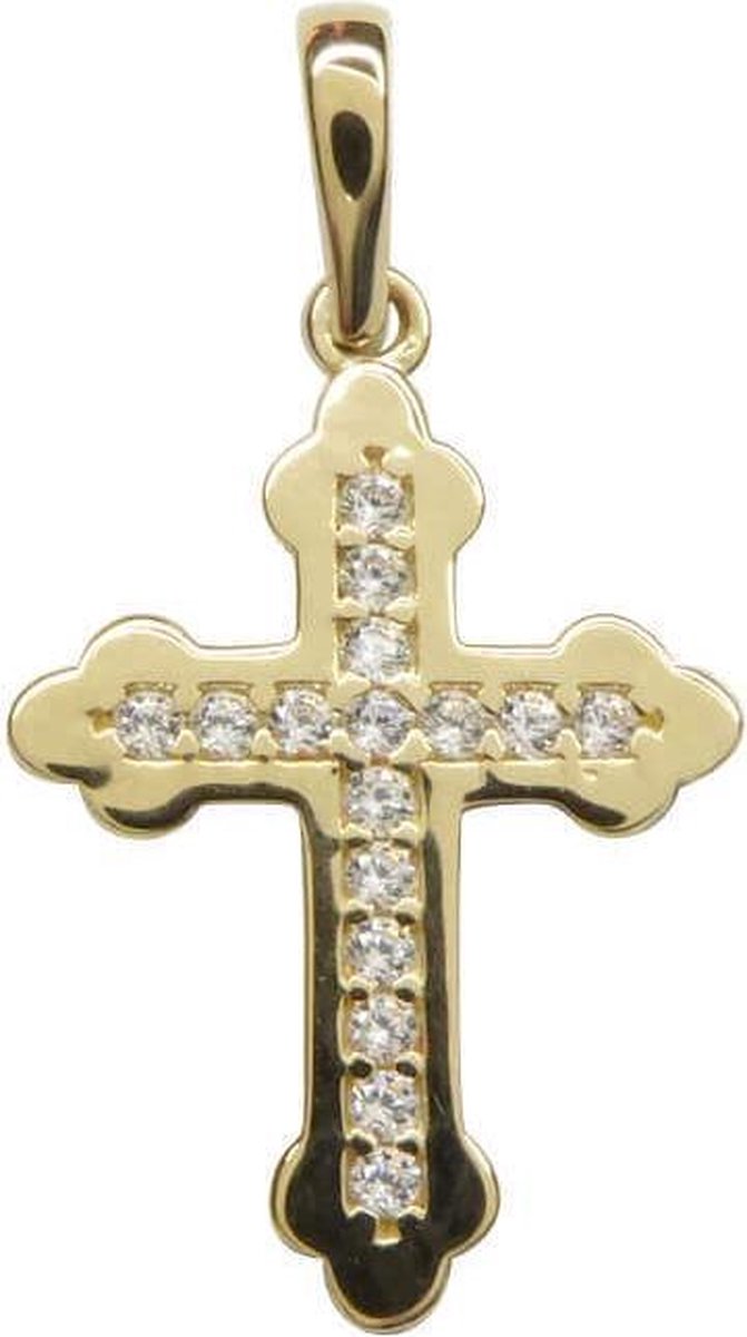 Merk: Christian Materiaal: 14 karaat geel goud (585) Serie: Christian Kruis Collectie Type sieraad: Hanger Sierstenen: Zirkonia Lengte: 18 mm Breedte: 13 mm Details: Fijn sieraad Opmerking: Ketting niet inbegrepen Dichtheid : Massief Voor: Dames, Heren Garantie: 2 jaar EAN: 8719878019985