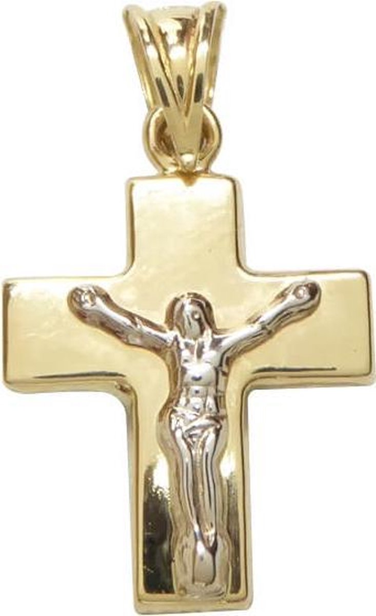Merk: Christian Materiaal: 14 karaat geel – wit goud (585) Serie: Christian Kruis Collectie Type sieraad: Hanger Edelstenen: Geen ( wel mogelijk ) Lengte: 16 mm Breedte: 14 mm Details: pootjes zetting Ketting n.v.t: Ketting niet inbegrepen Dichtheid : Hol Voor: Dames Garantie: 2 jaar EAN: 8719878010067