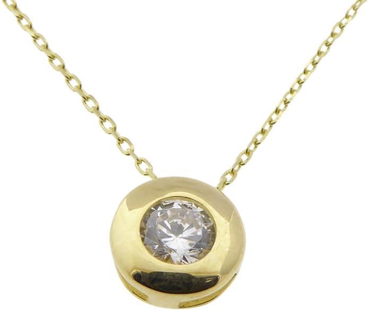 Merk: Christian Materiaal: 14 karaat geel goud Sierstenen: Zirkonia :Type hanger: Solitair hanger Diameter: 7 ½ mm :Lengte ketting: 42 cm Voor: Dames EAN: 8719878003595