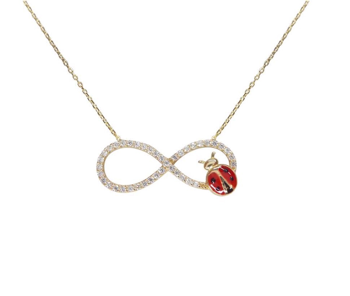 Gouden zirkonia Infinity lieveheersbeestje hanger