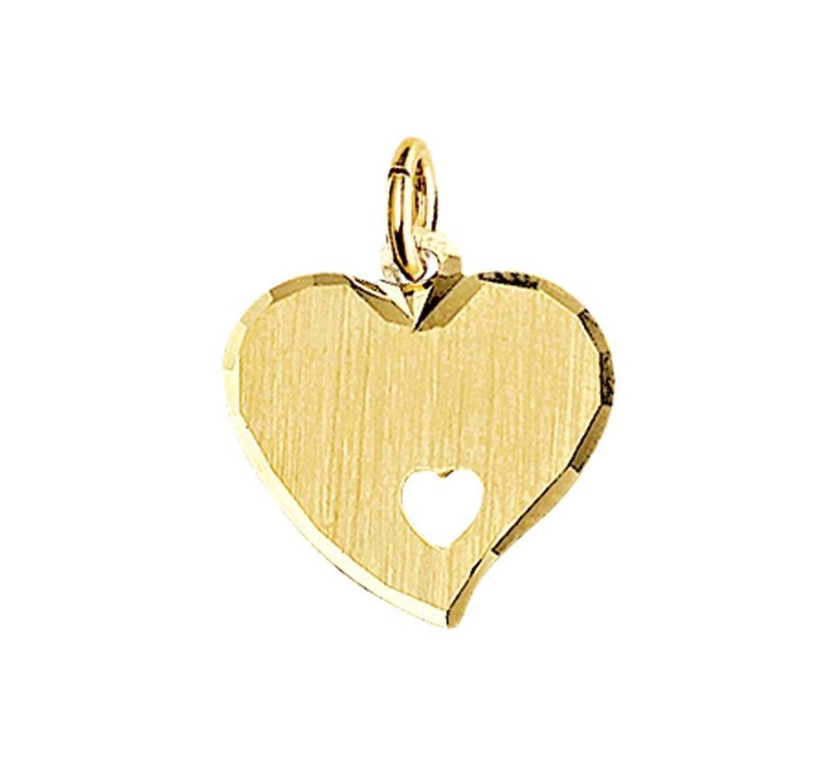Geelgouden graveerhart met een gediamanteerde afwerking. De hanger heeft een dikte van 0.6mm.