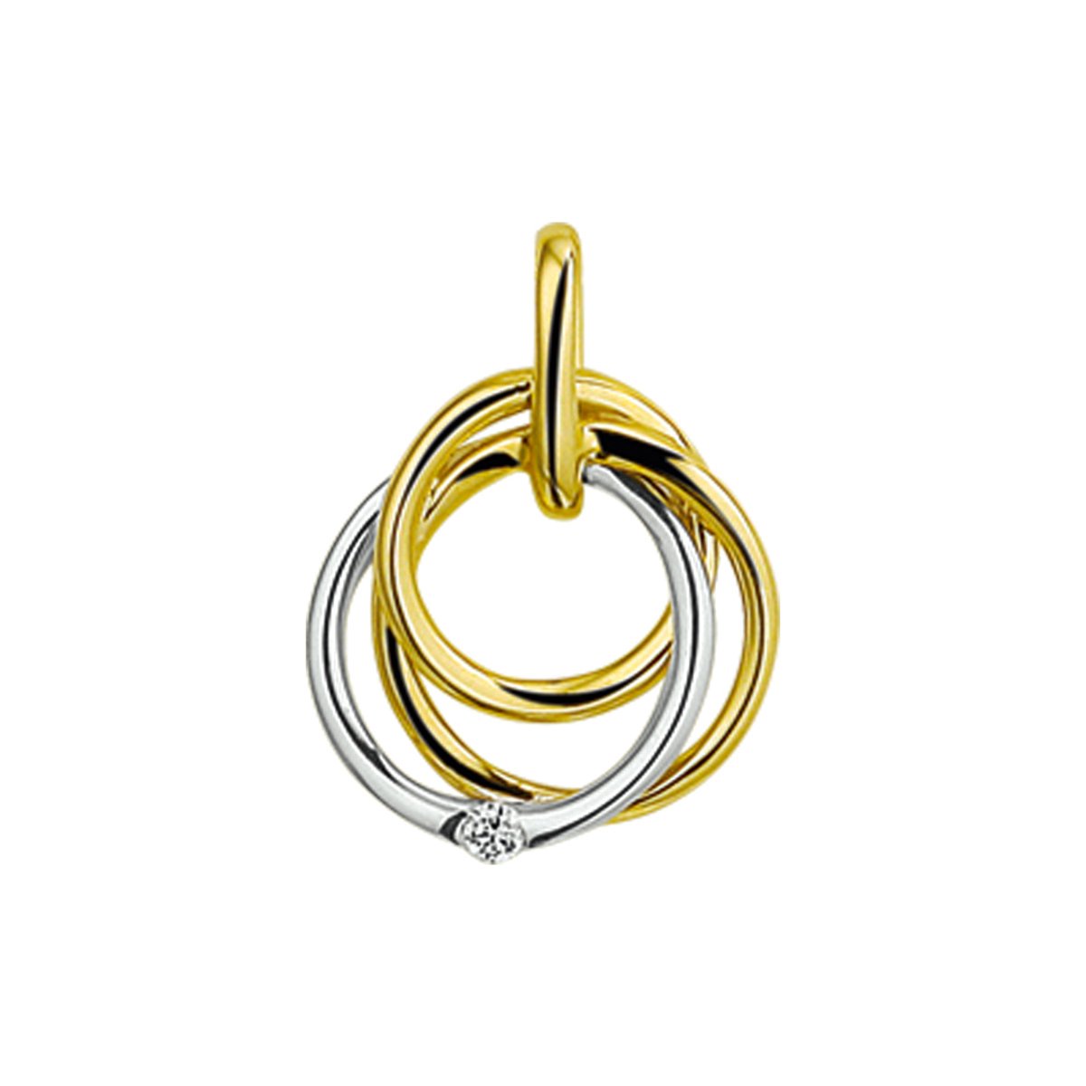 Bicolor wit- en geelgouden hanger met diamant en een poli/matte afwerking.