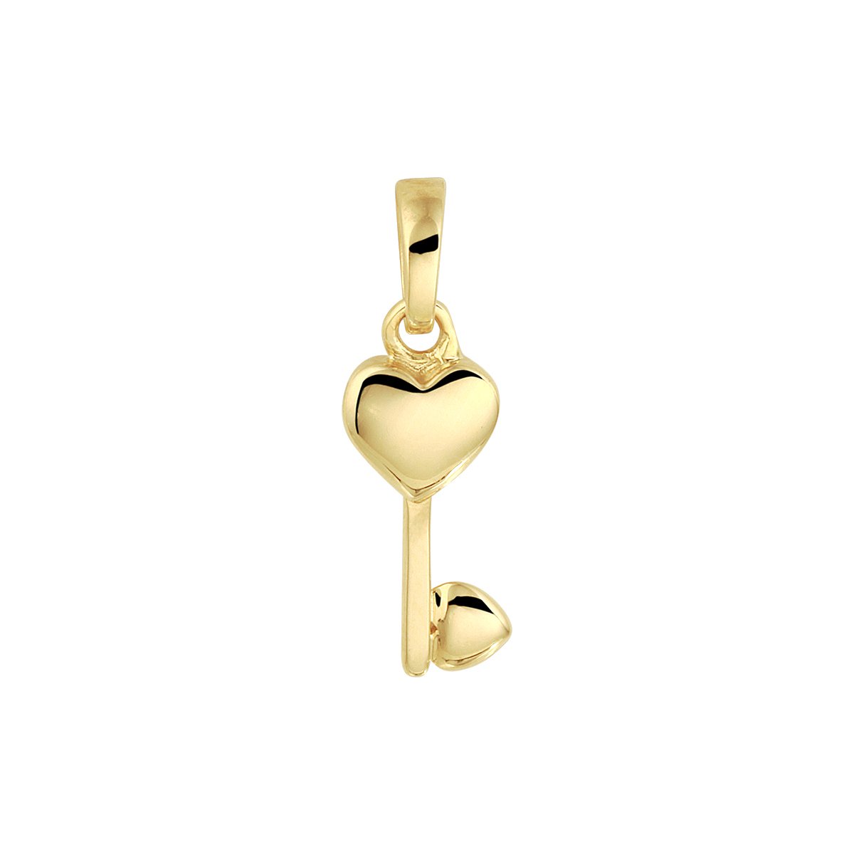 14k Geelgouden hanger uitgevoerd in de vorm van een sleutel met een hartje. De hanger heeft een totale hoogte van 2cm en een breedte van 6.2mm.