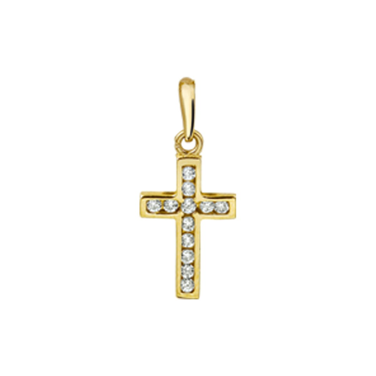 Huiscollectie Hanger Geelgoud Kruis En Zirkonia