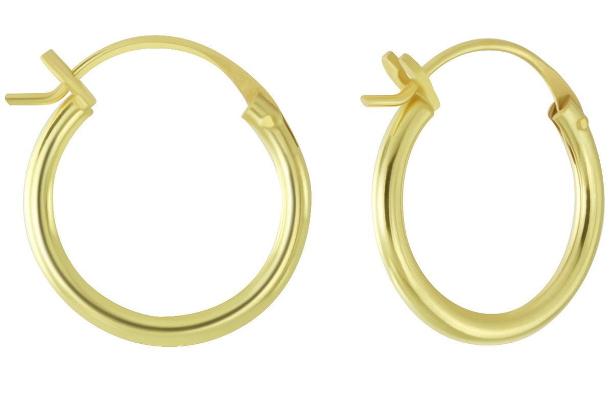 Sterling zilver 925 14 mm oorringen met klassieke Franse sluiting – goldplated – goudkleur.