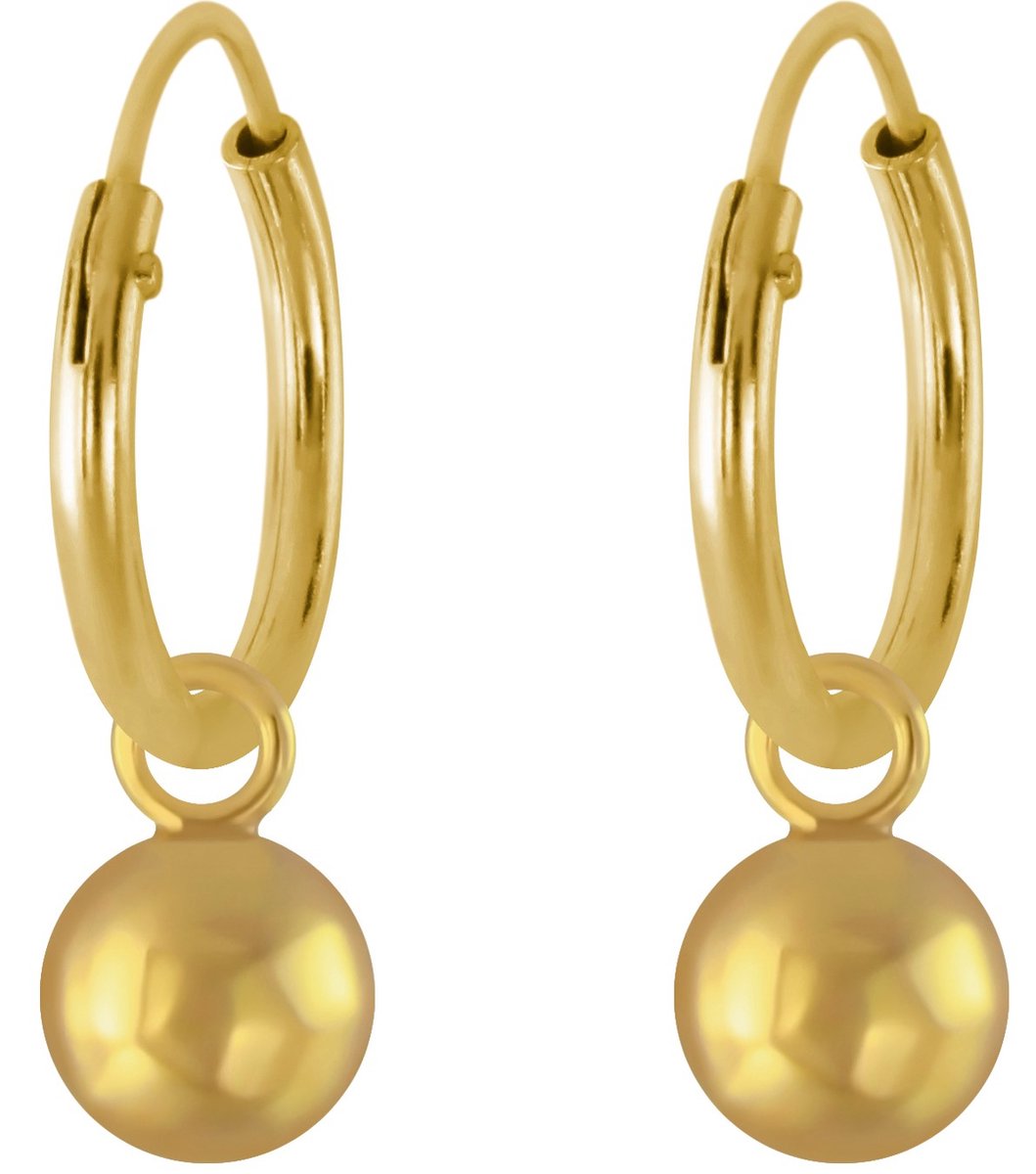 Joy|S – Zilveren bal bedel oorbellen – gold plated – bol bedel oorringen