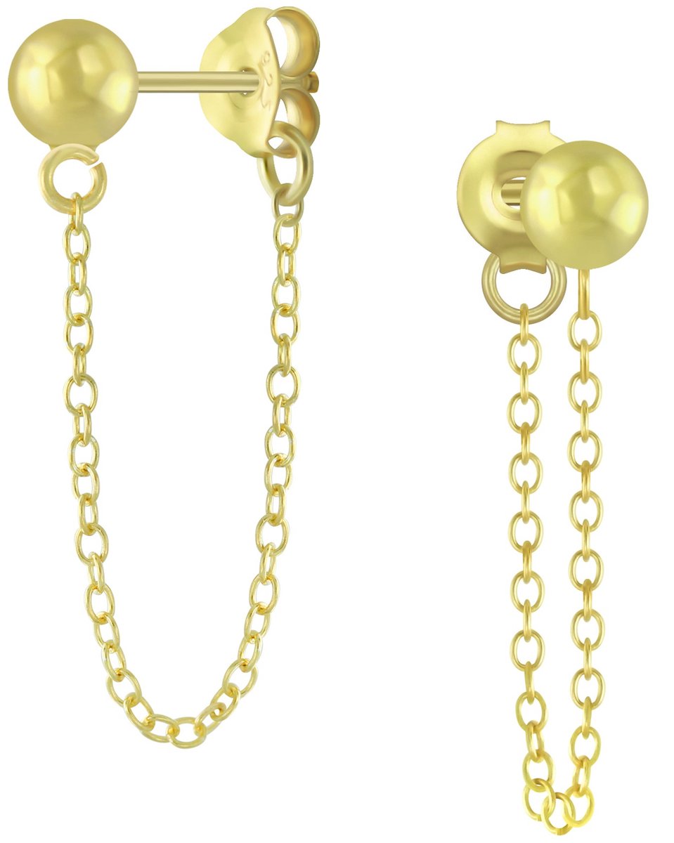 Sterling zilver 925 bal met kettinkje oorbellen – goldplated – goudkleur.
