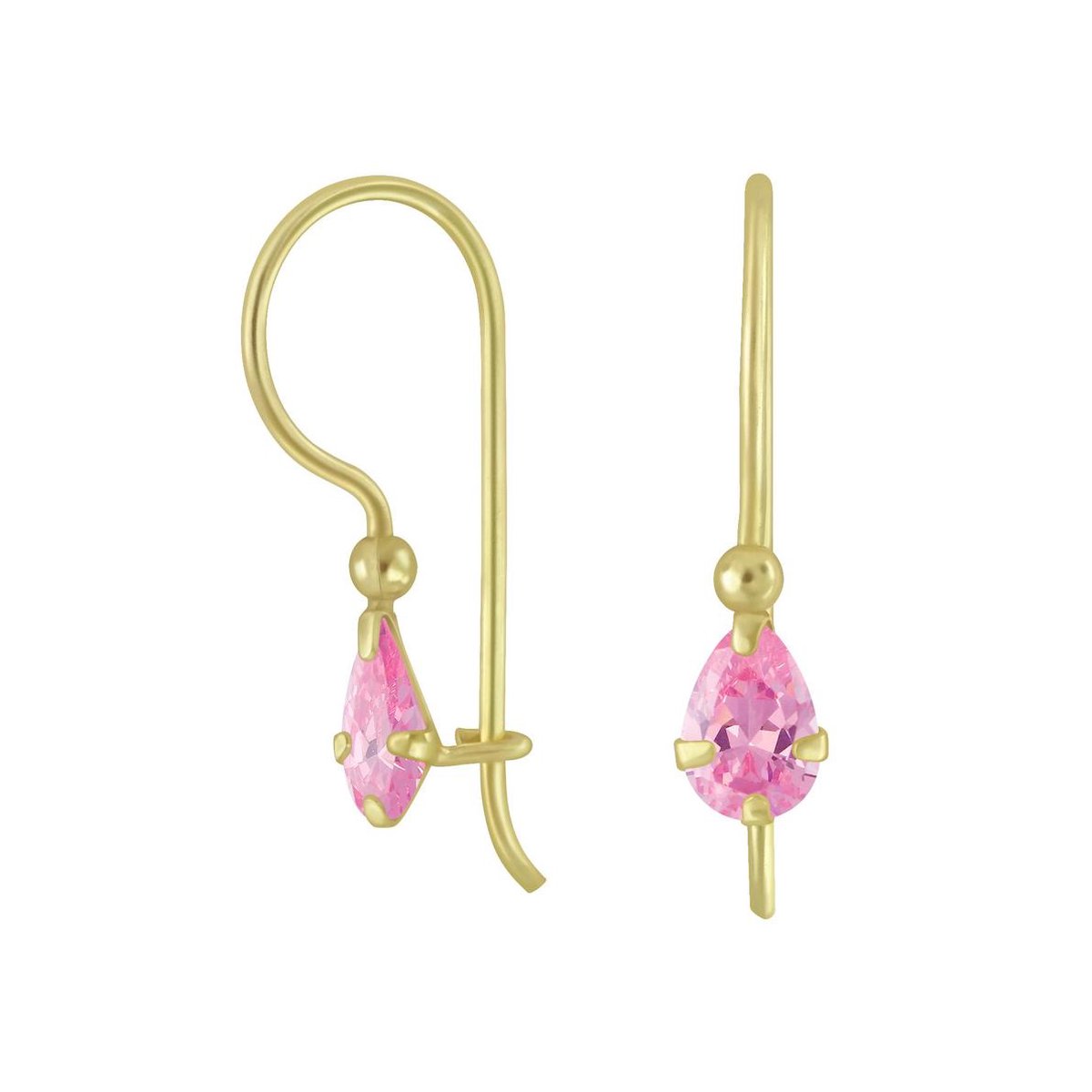 Joy|S – Zilveren kidney oorbellen – zirkonia druppel roze – gold plated