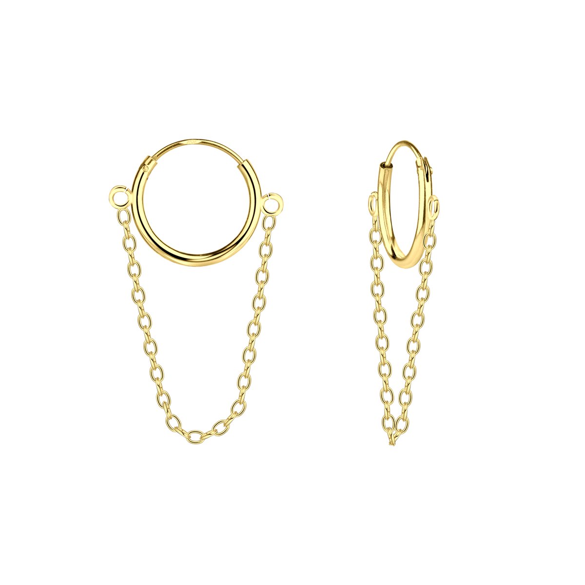 Joy|S – Zilveren oorringen met kettinkje – gold plated