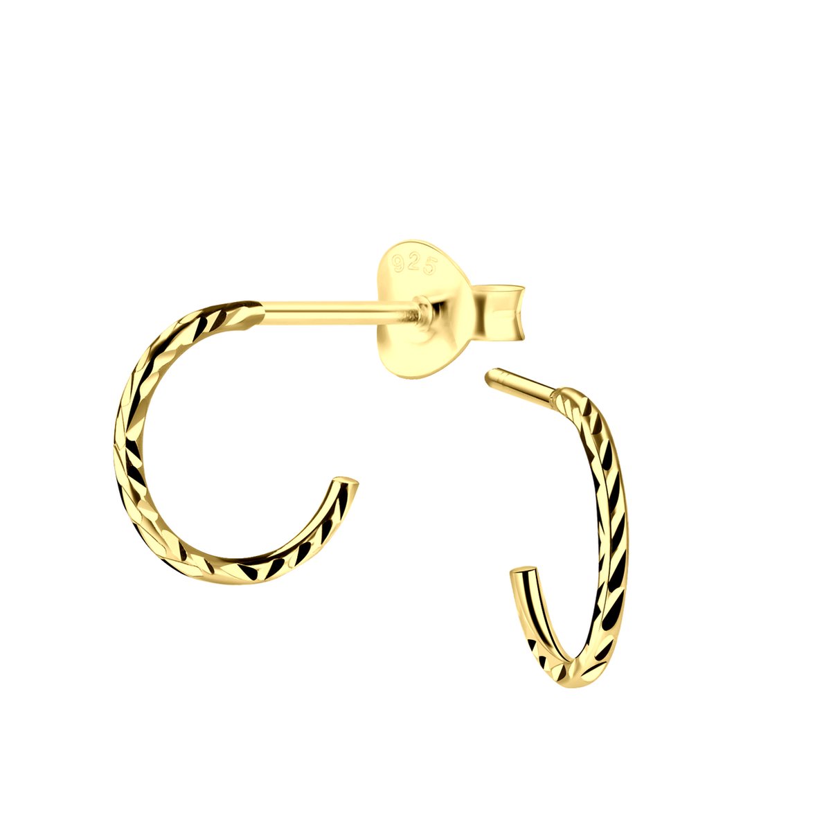 Sterling zilver 925 oorringen stud – diamond cut 10 mm – gold plated – goudkleur.
