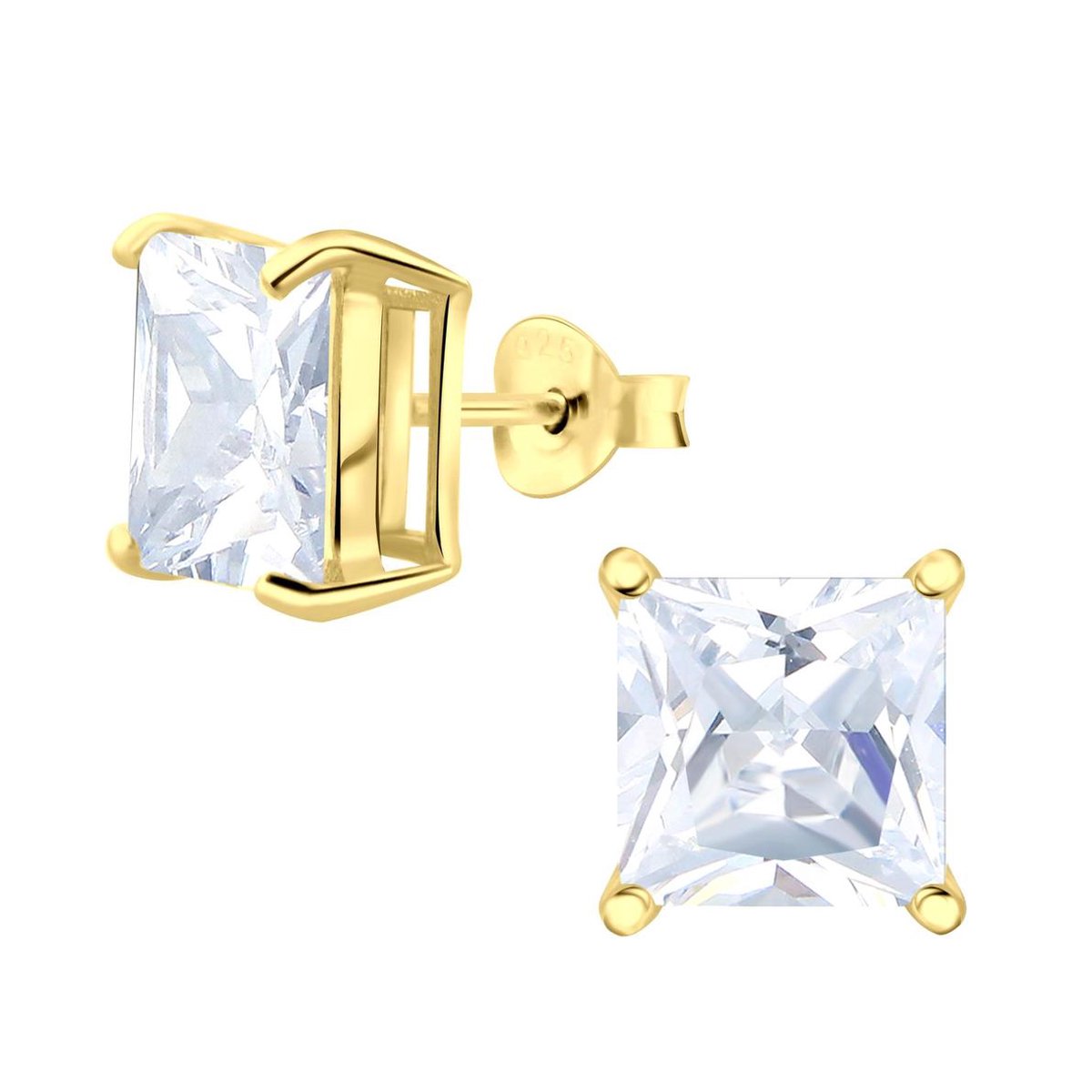 Joy|S – Zilveren vierkant oorbellen – 8 mm – zirkonia – gold plated