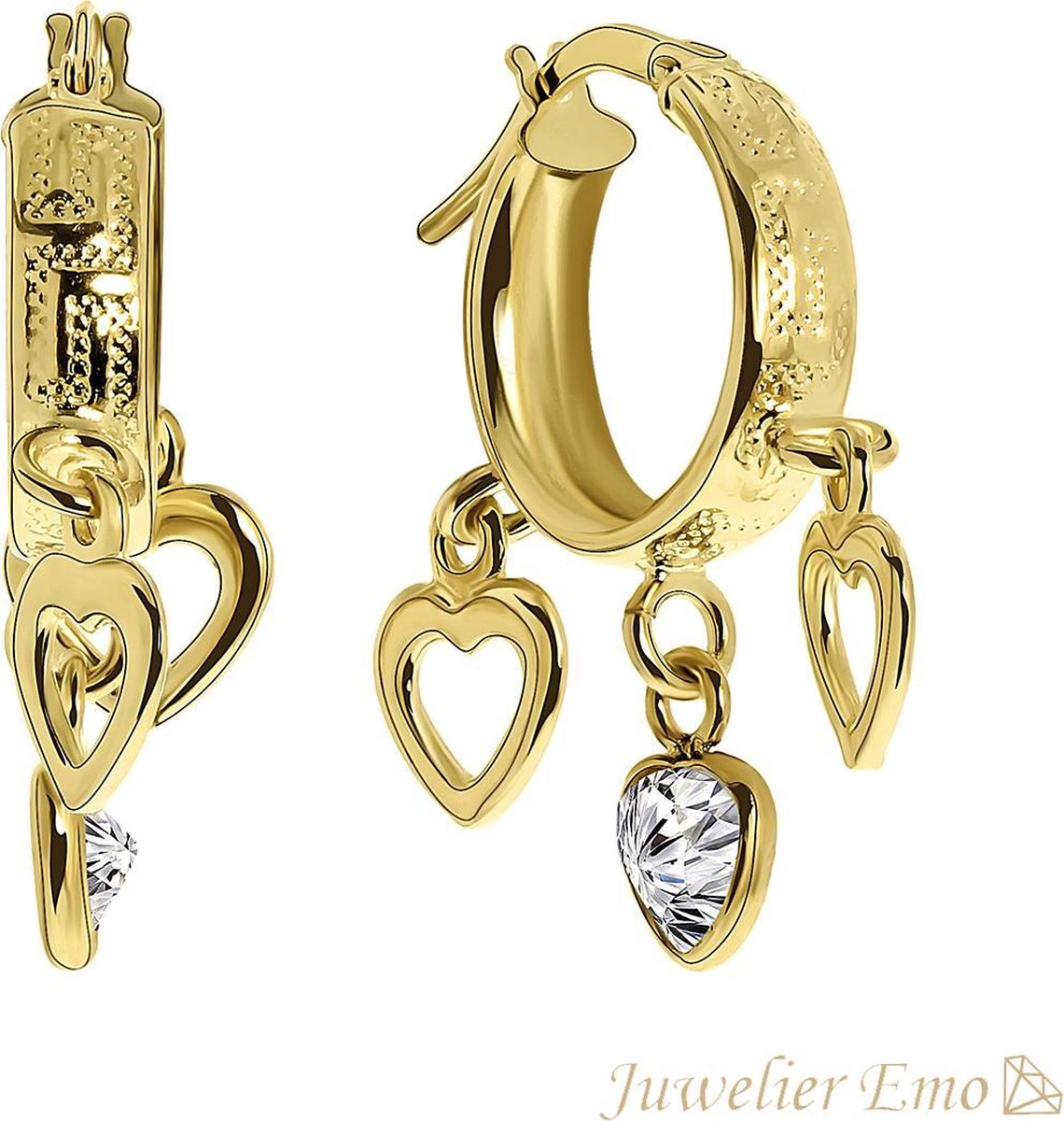 Juwelier Emo – 14 Karaat Gouden Kinderoorbellen meisje met Hartbedels – 14 mm