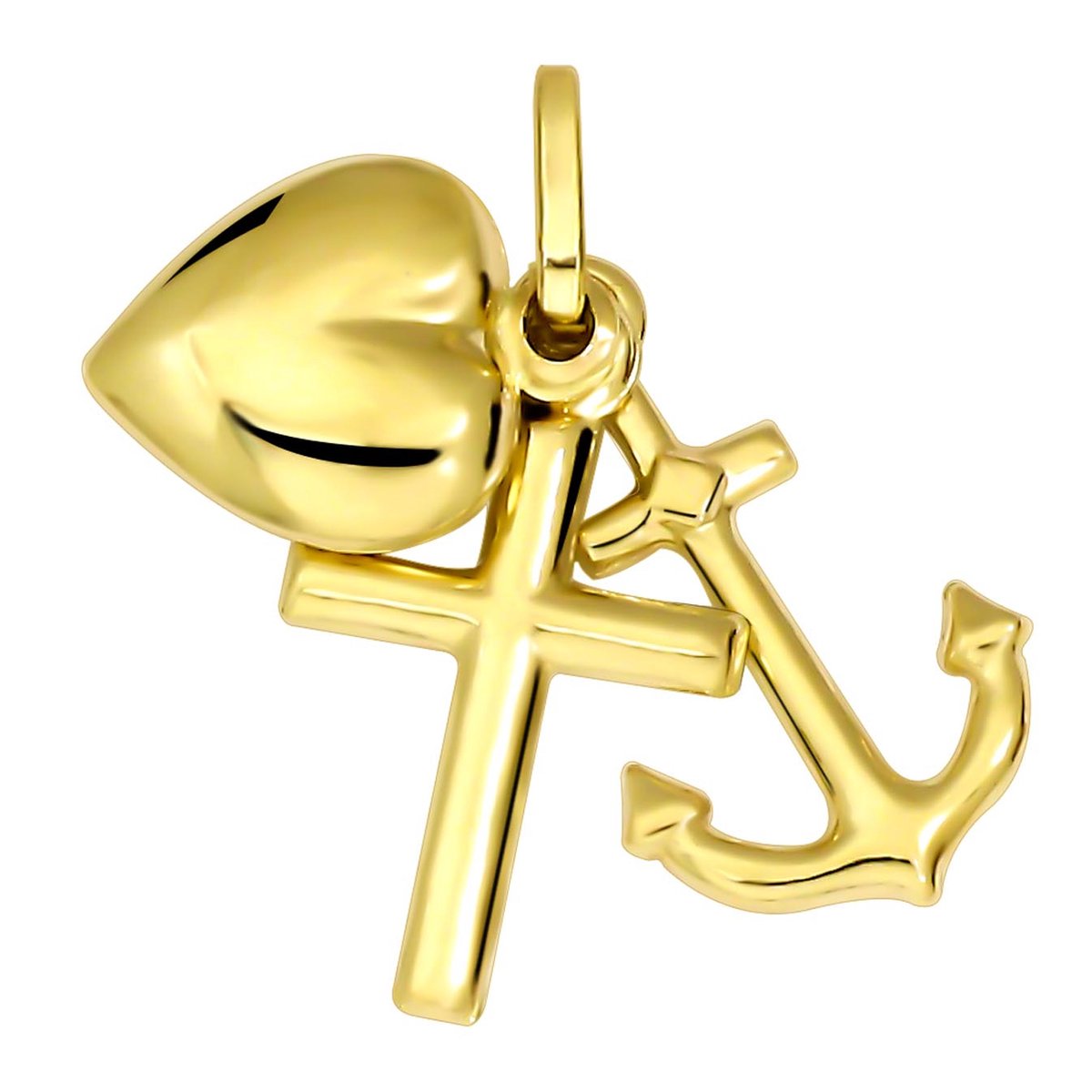 Juwelier Zwartevalk 14 karaat gouden geloof, hoop en liefde hanger – 14.020-GR
