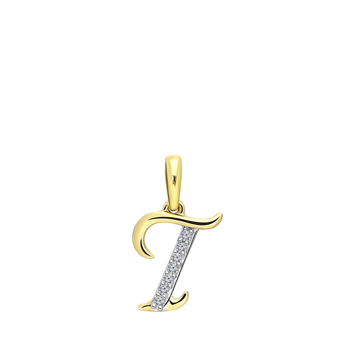 Lucardi Dames alfabet hanger met diamant (0,03ct) – Hanger – Cadeau voor vrouwen – 14 Karaat Goud – Geelgoud
