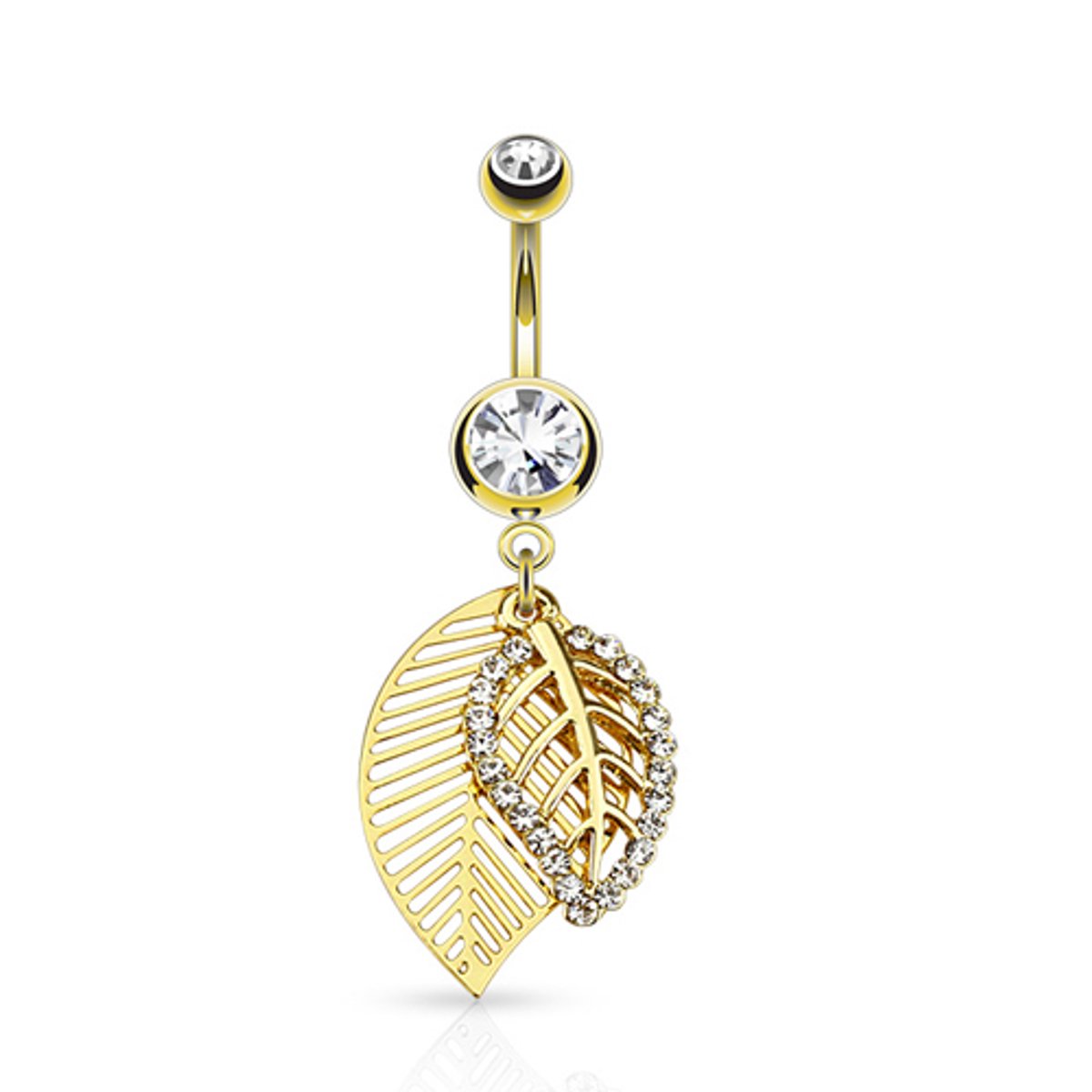 Navelpiercing dubbel blad gold plated 14kt. – LMPiercings