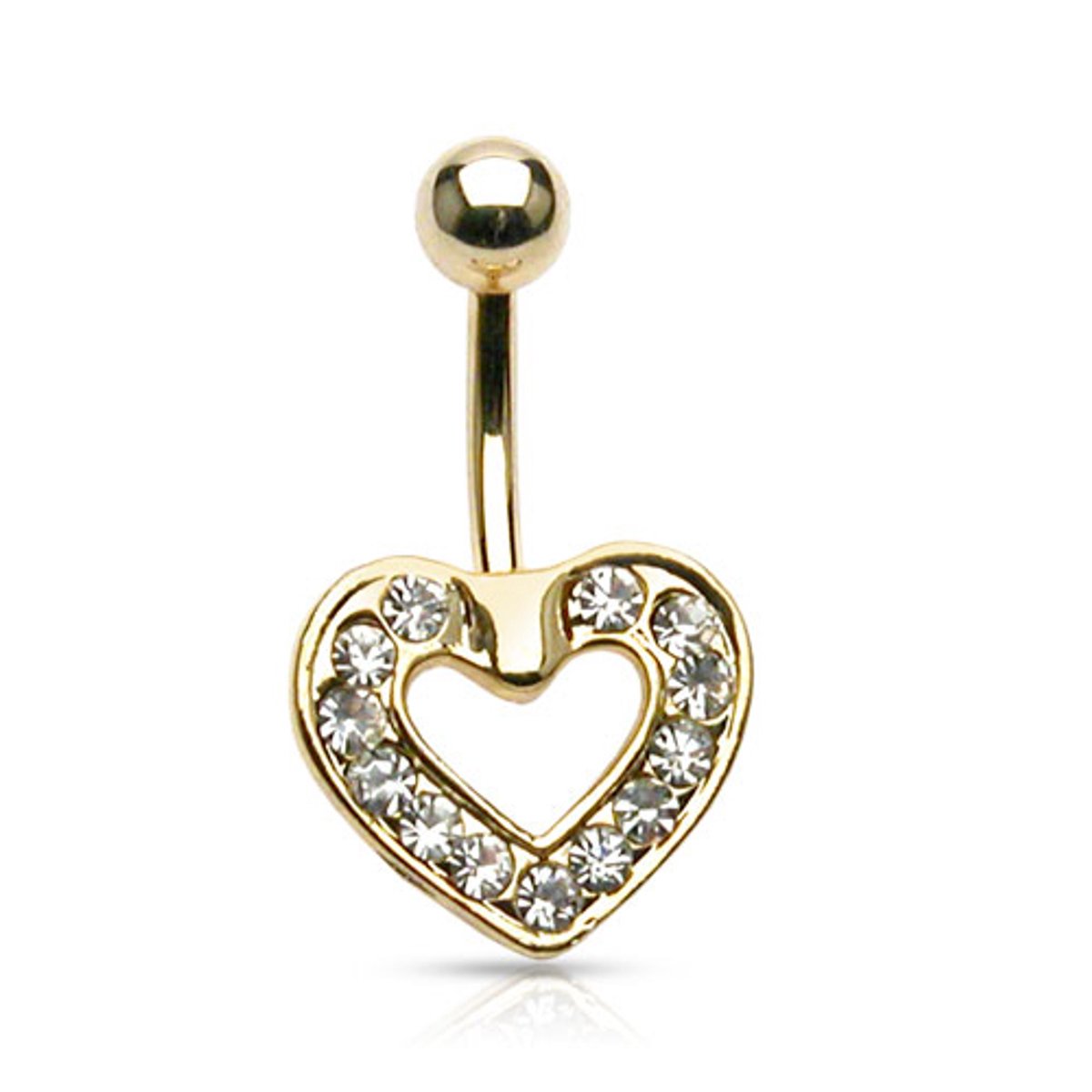 Navelpiercing hart gold plated 14kt. met steentjes – LMPiercings