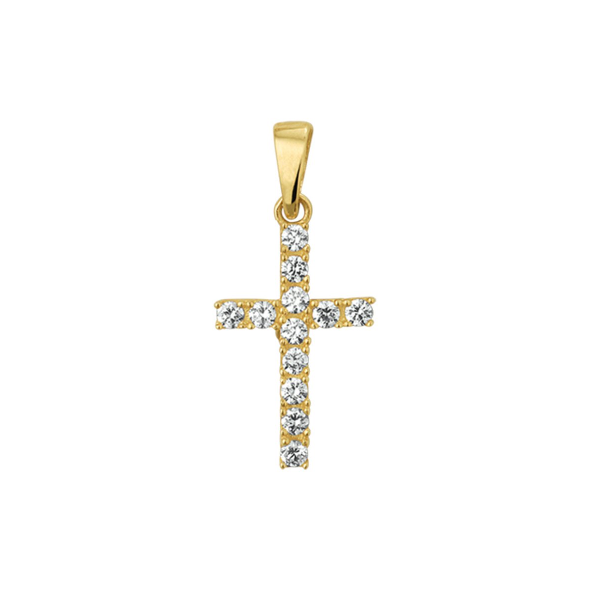 Schitterende 14K Gouden Hanger Kruis belegd met 12 transparante zirkonia stenen.