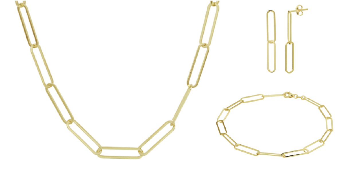 Schitterende SET : 14 Karaat Gouden Halsketting Armband en Oorstekers paperclip | Geschenkset