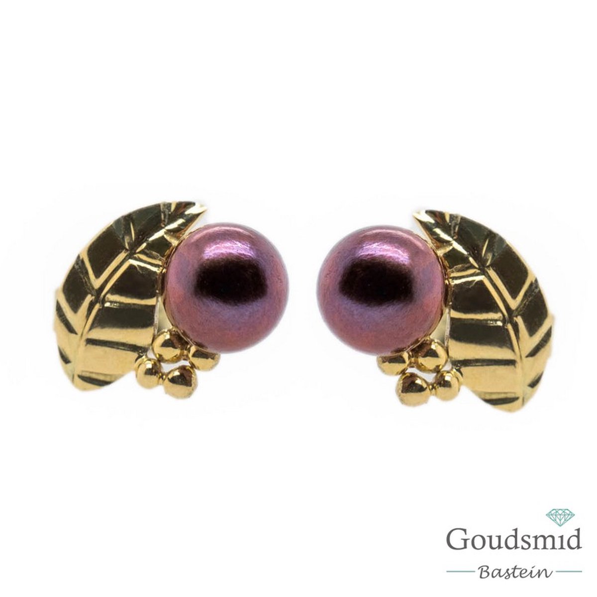 SCRATCHED GOLD oorknoppen blaadjes parel