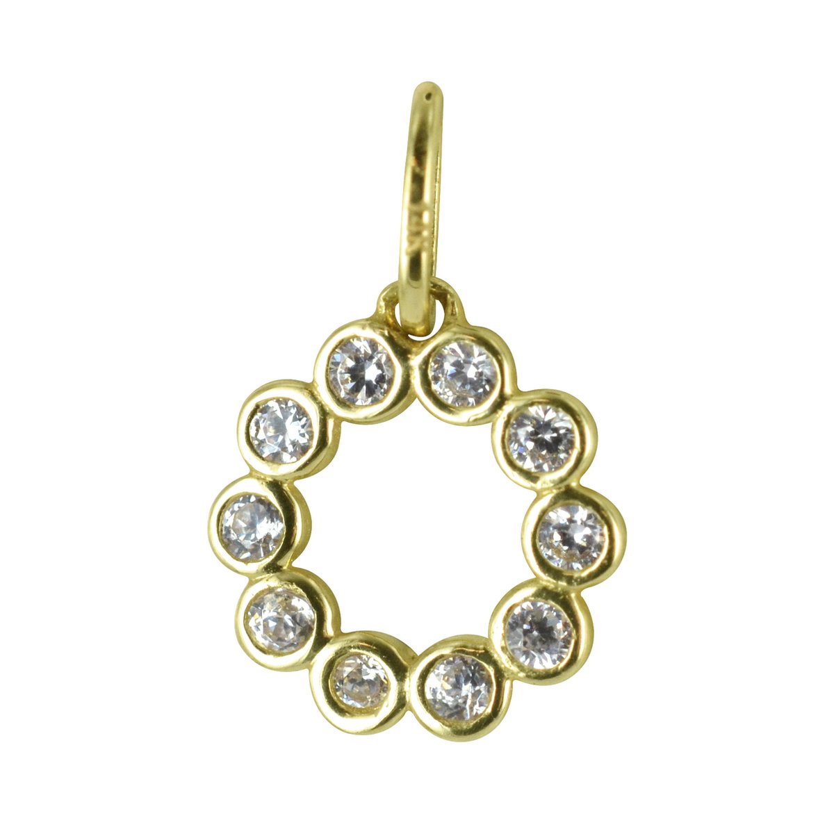 Silventi 132401195 Gouden hangertje – Dames – Cirkel – Zirkonia Steentjes – 7,7 mm Doorsnee – 14 Karaat – Bedel – Goud