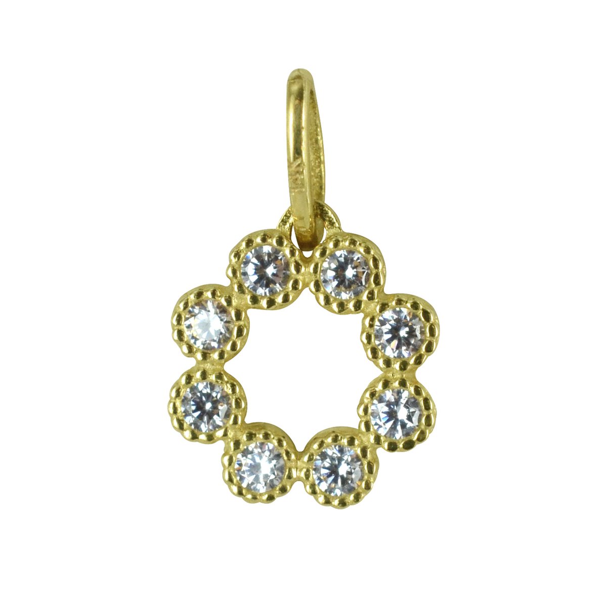 Silventi 132401202 Gouden Hangertje – Dames – Cirkel – Zirkonia Steentjes – 7 mm Doorsnee – 14 Karaat – Bedel – Goud