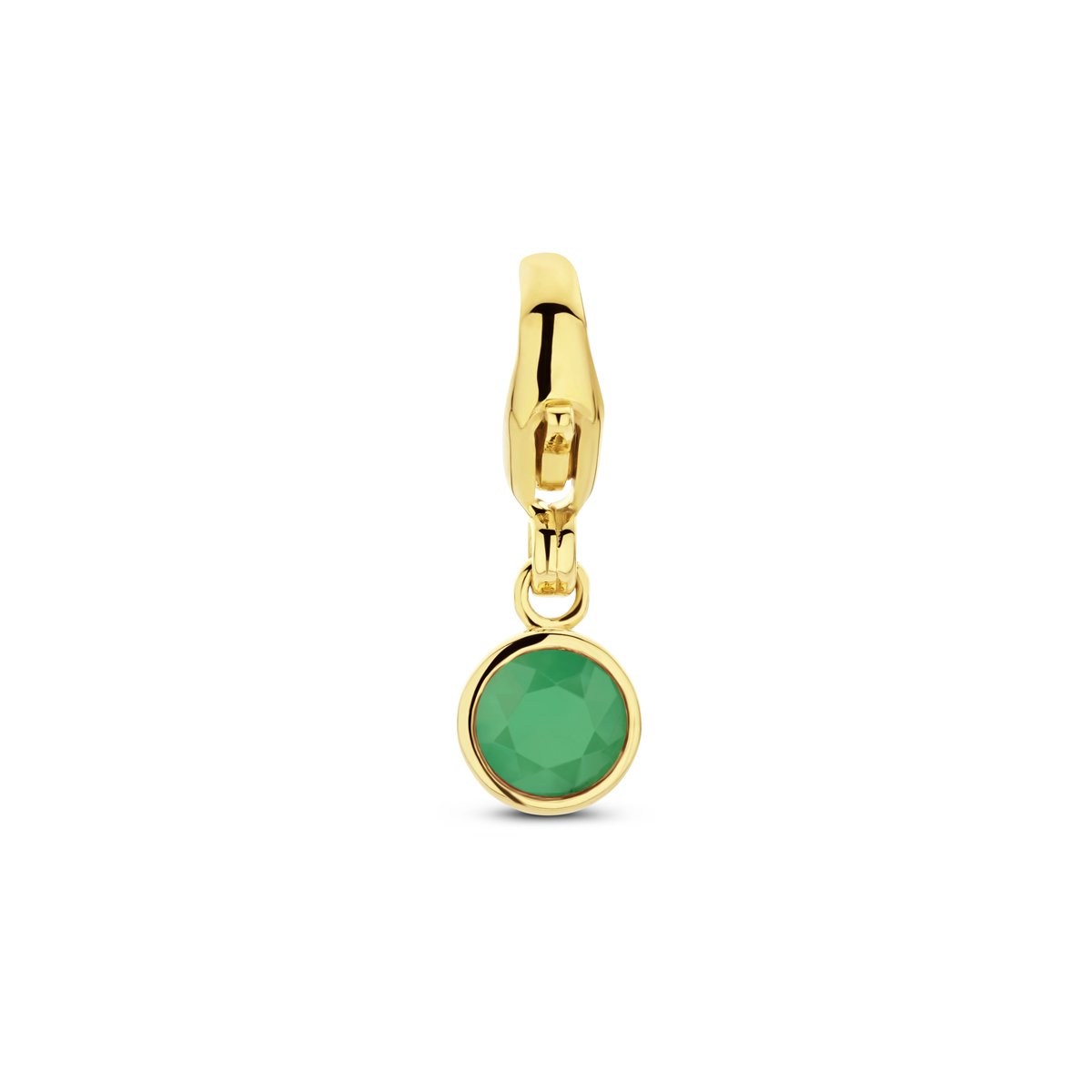 14k Geelgouden slotbedel uitgevoerd met schitterende kleursteen. De slotbedel heeft een afmeting van 15x5mm.