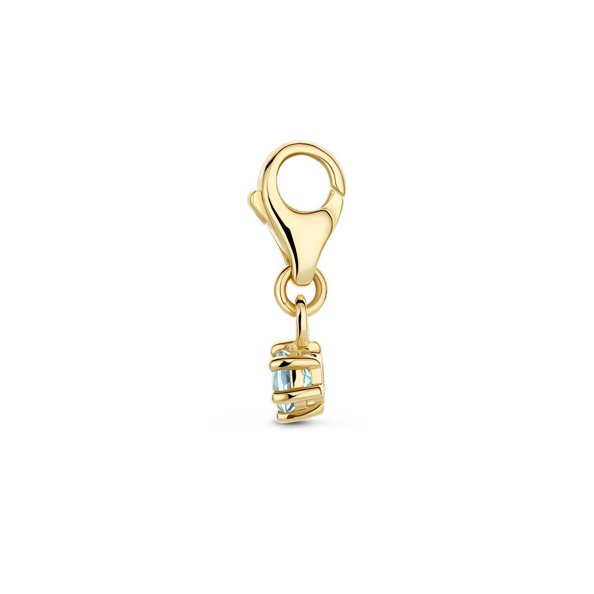 14k Geelgouden slotbedel uitgevoerd met een geboortesteen. De hanger heeft een totale hoogte van 15.5mm.