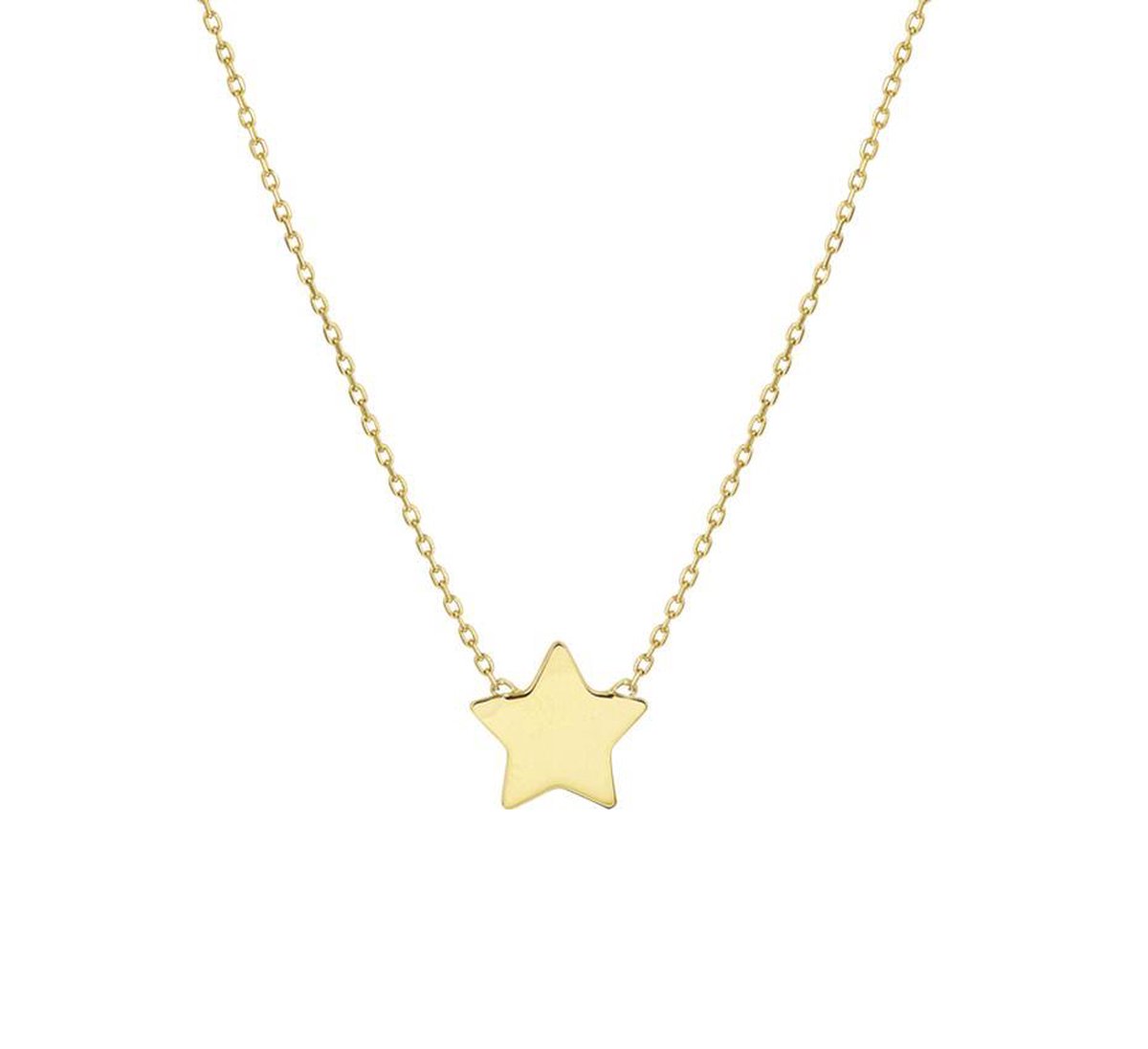 Geelgouden ketting met een ster. De lengte bedraagt 42cm met 2cm extensie en de schakelbreedte is 1mm.