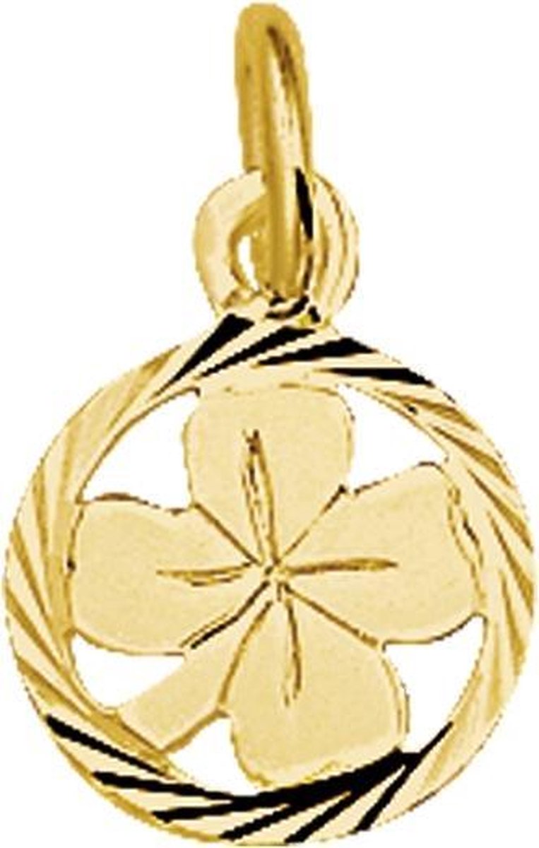 Geelgouden klaver hanger met een diameter van 10mm in een gediamanteerde afwerking en uitgevoerd met een stevig hangoog. De klaverblaadjes hebben elk hun eigen betekenis: het eerste blad is hoop het tweede vertrouwen het derde is liefde en het vierde staat voor geluk. Tip: Perfect kado voor je geliefde of dierbare! Combineer deze hanger met een ketting uit onze collectie en hij kan direct om!.