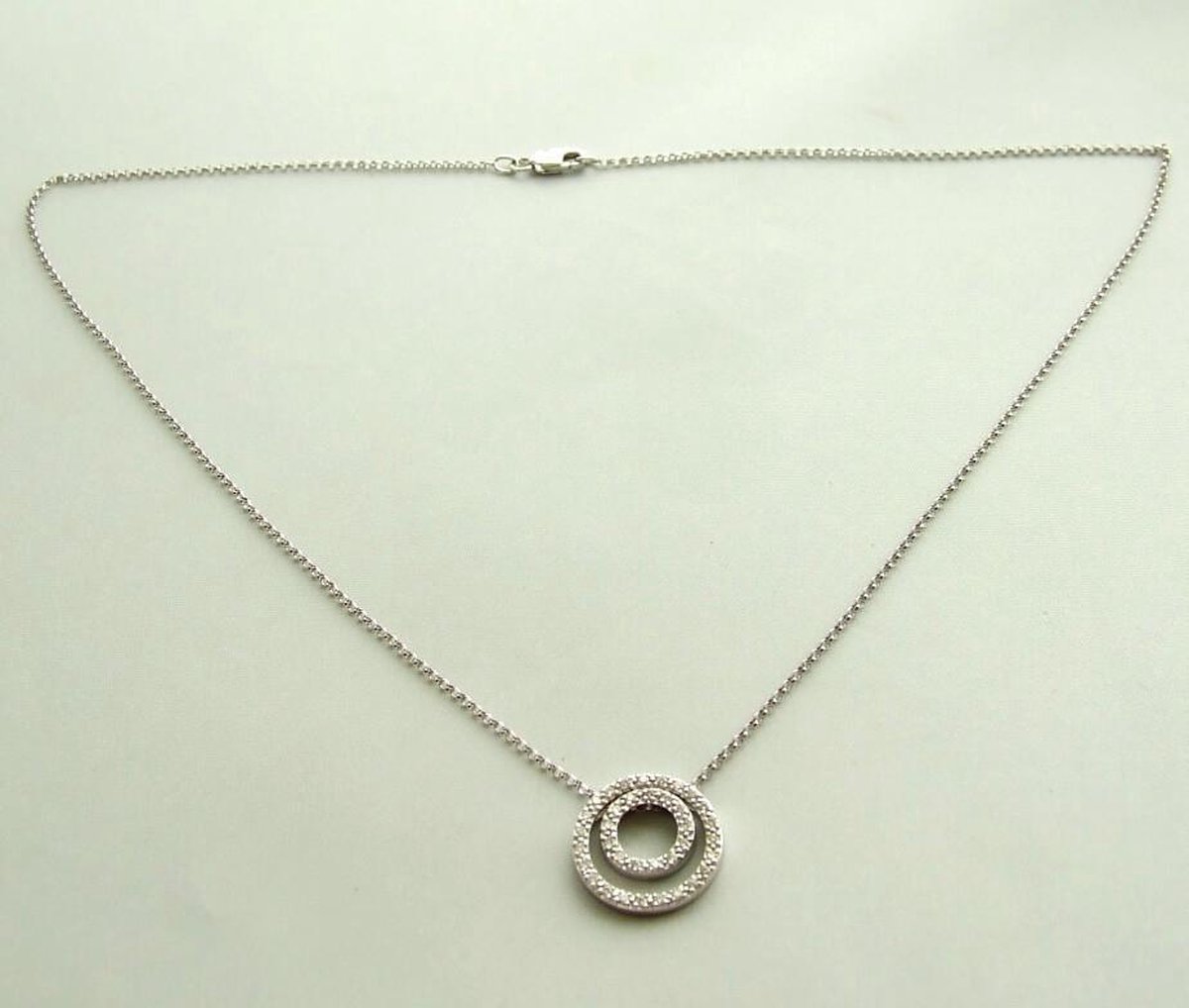 Merk: Christian Materiaal: 14 karaat wit goud Edelstenen: Diamanten 0.28 ct. Design: Twee ringen in hanger Model: Fashion Lengte: 45 cm Voor: Dames EAN: 8719699118829