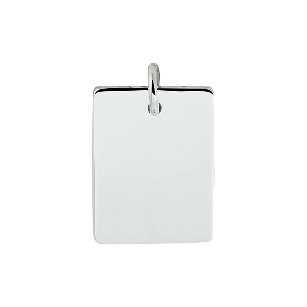 Gerhodineerd zilveren graveerhanger met een afmeting van 18x14mm. De hanger heeft een dikte van 0.9mm en een totale hoogte van 21mm.